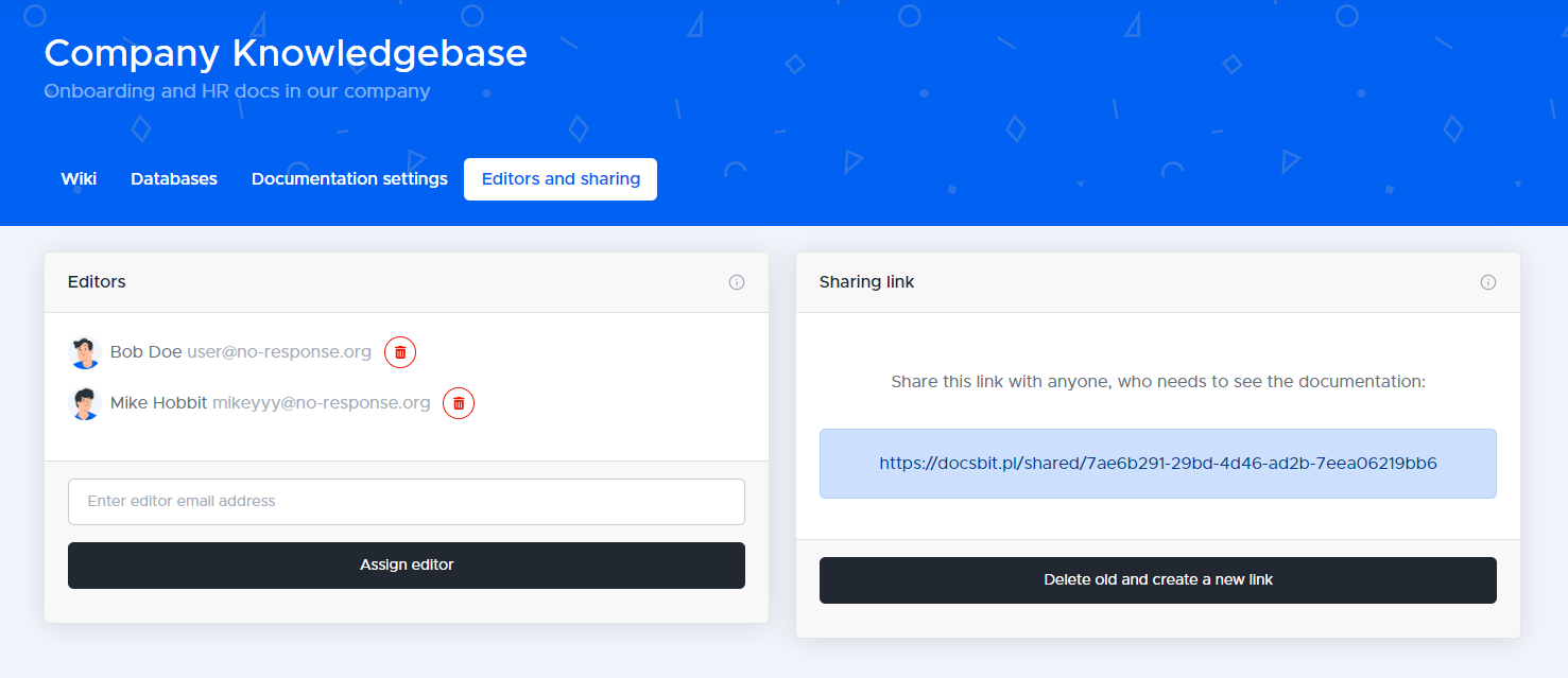 Changing the sharing link is a breeze for documentation owners, requiring just a single click from their account.
