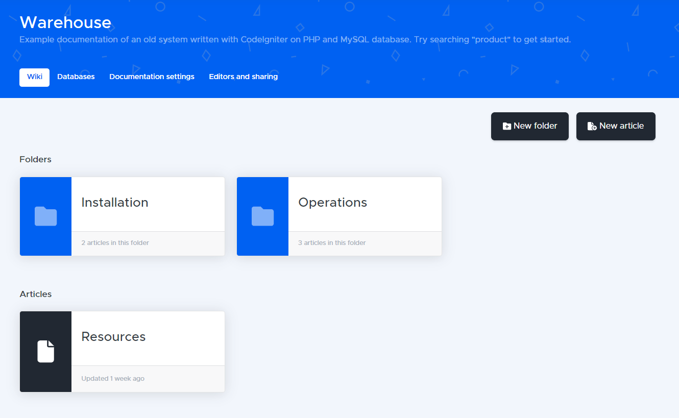 Each documentation set can be further organized with folders containing multiple articles, offering a tailored structure that suits your specific needs.